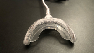 The Blue light therapy helps with teeth whitening by eliminating stains and discoloration.