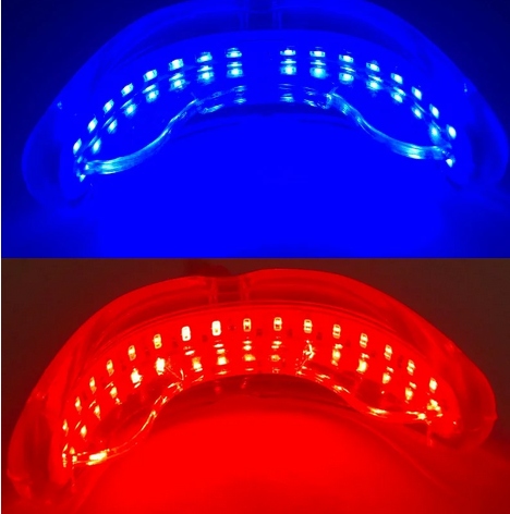 Red light promotes repair, reduces inflammation andthe blue light targets the infections and bacteria causing the sensitivity.